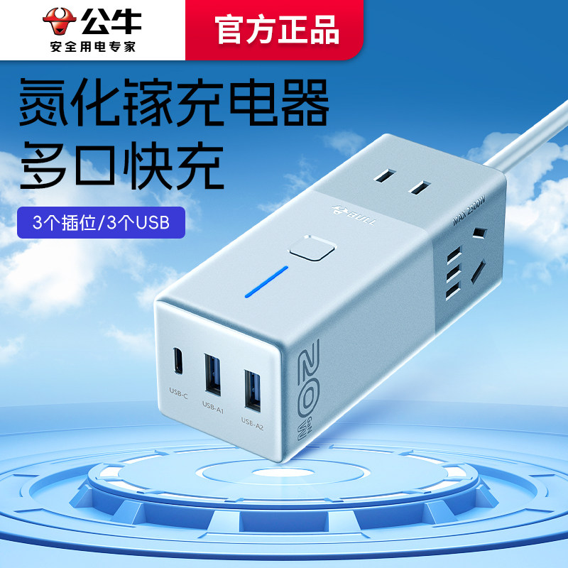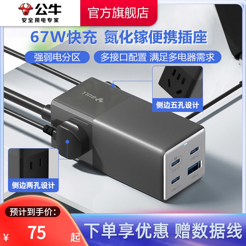 公牛67W快充插座USB排插氮化镓家用办公多功能笔记本便携插座插排