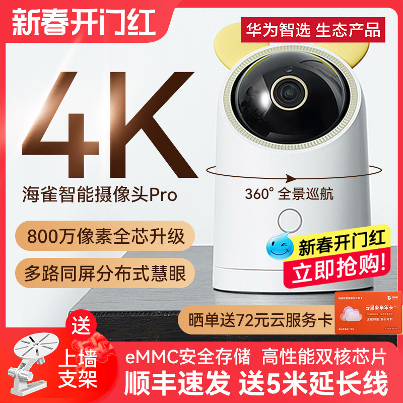 华为智选海雀摄像头Pro4K版家用室内手机远程无线wifi网络智能监控器ai全景360度无死角高清监控小孩宠物摄影