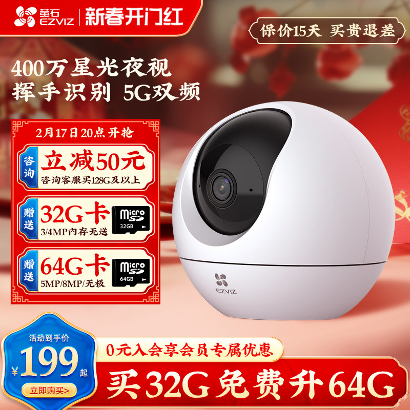 萤石云 C6C星光增强版智能2K监控器摄像头家用手机无线wifi远程高清夜视室内4G看宠物婴儿500万海康威视莹石