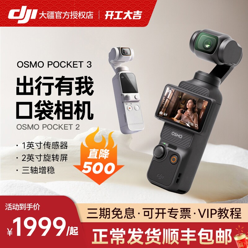 【限时直降700】DJI 大疆Pocket2/3 osmo灵眸口袋相机美颜第一人称视角手持防抖云台4K高清增稳摄像机