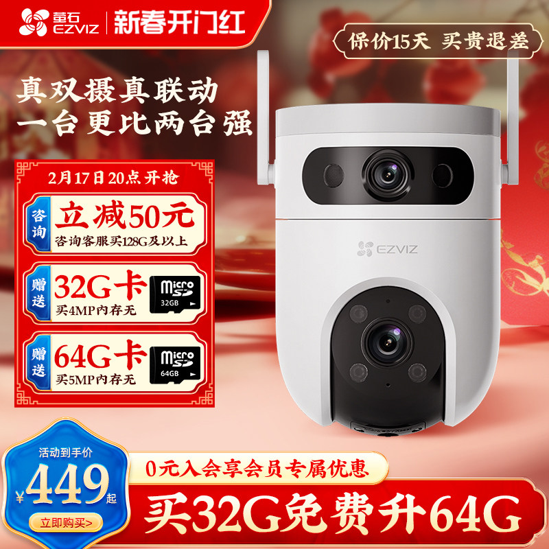 萤石云H9C智能家用双摄监控摄像头室外全景语音对讲监控器3K无线wifi极清全彩夜视500万远程手机海康威视莹石