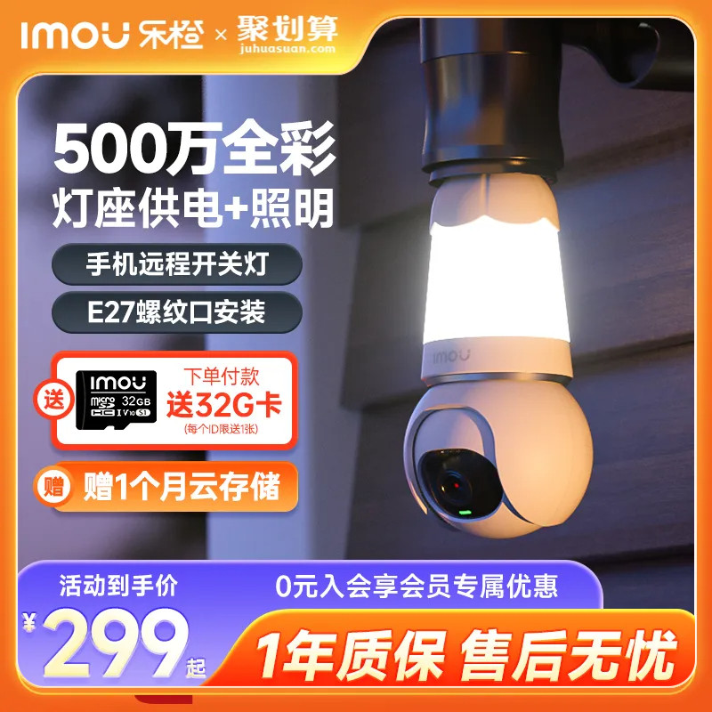 乐橙免插电灯座LED照明摄像头 360度全景手机wifi无线远程监视器