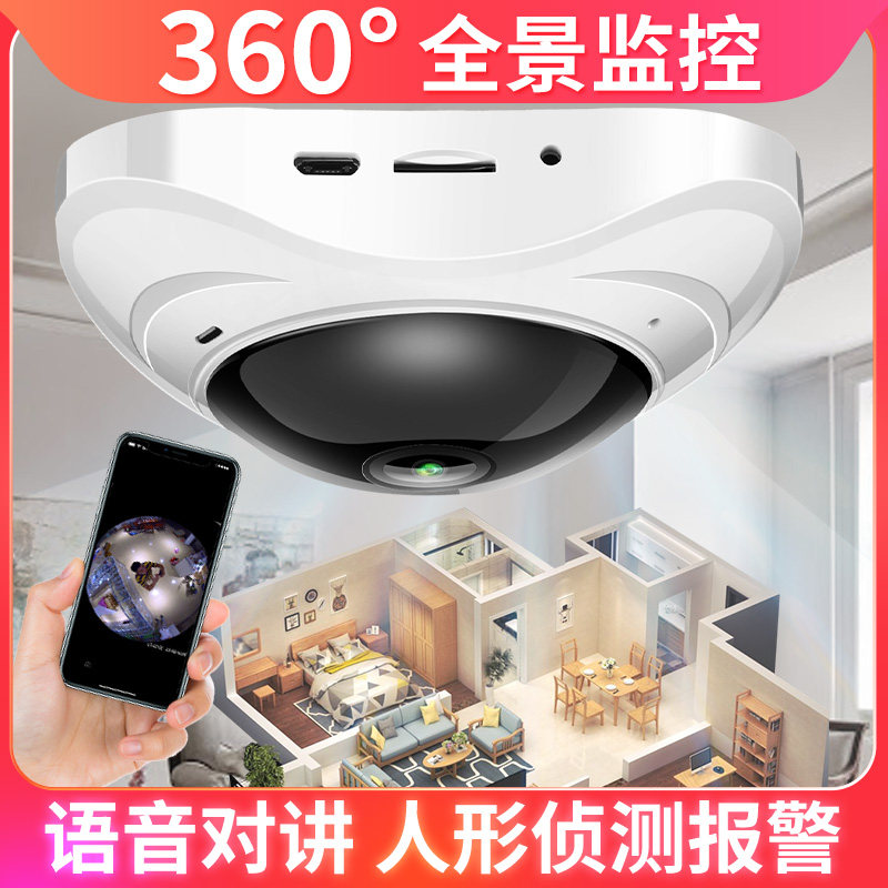 360度全景吸顶摄像头手机远程家用影无线WIFI死角高清智能监控器