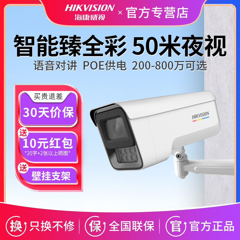 海康威视网络摄像机POE录音室外200万监控摄影头400万全彩夜视B12