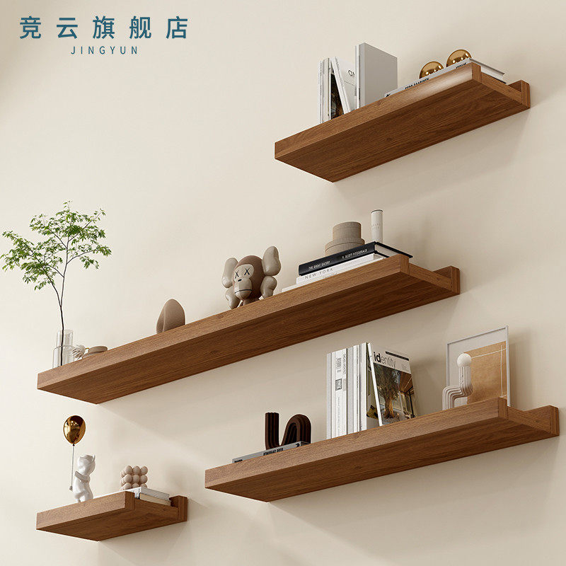 实木墙上置物架免打孔寝室墙面宿舍床头一字木板书架壁挂收纳架子