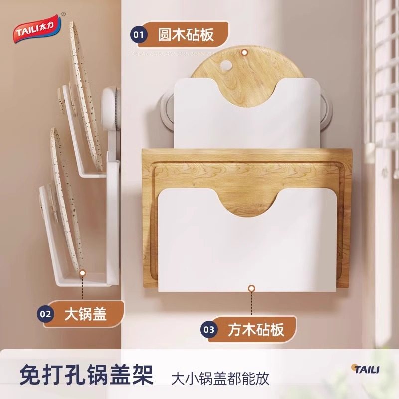 太力放锅盖架置物架免打孔壁挂式砧板切菜板放置架子厨房专用收纳