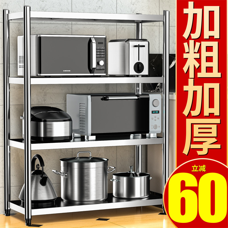 304不锈钢厨房置物架落地多层多功能微波炉收纳架锅架橱柜储物架