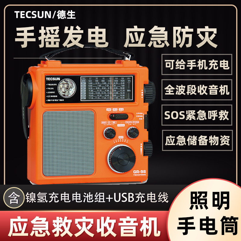 Tecsun/德生 ICR-100插卡收录音机 广播半导体老人收音机 充电式