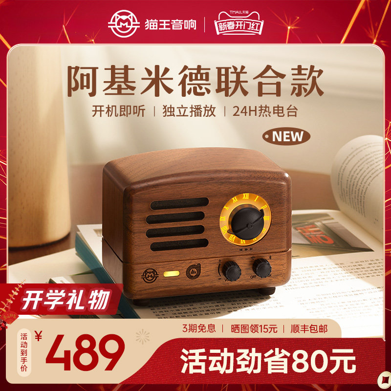 猫王音响 猫王1胡桃木家居典藏收音机猫王音响无线蓝牙音箱复古礼