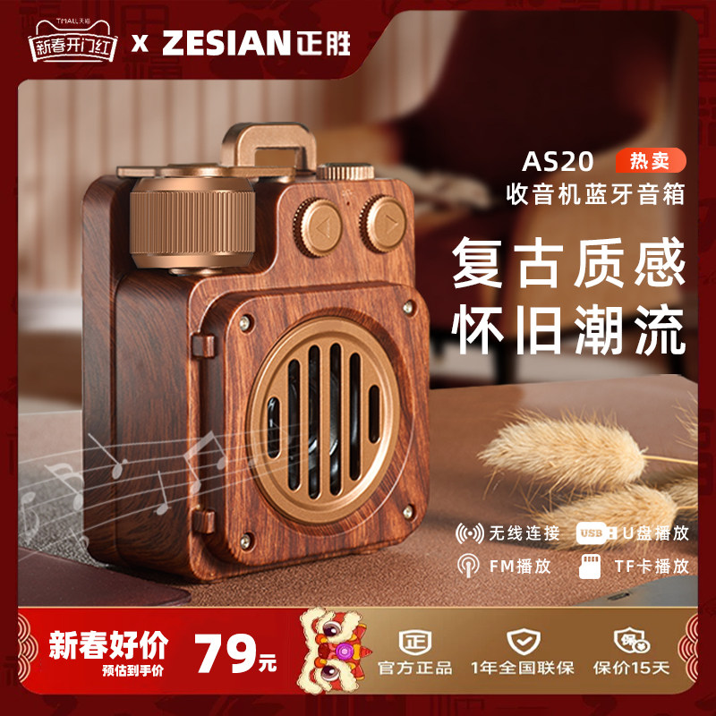 配置太顶了!出口货~便携手提复古木质蓝牙音箱音响FM收音机送人