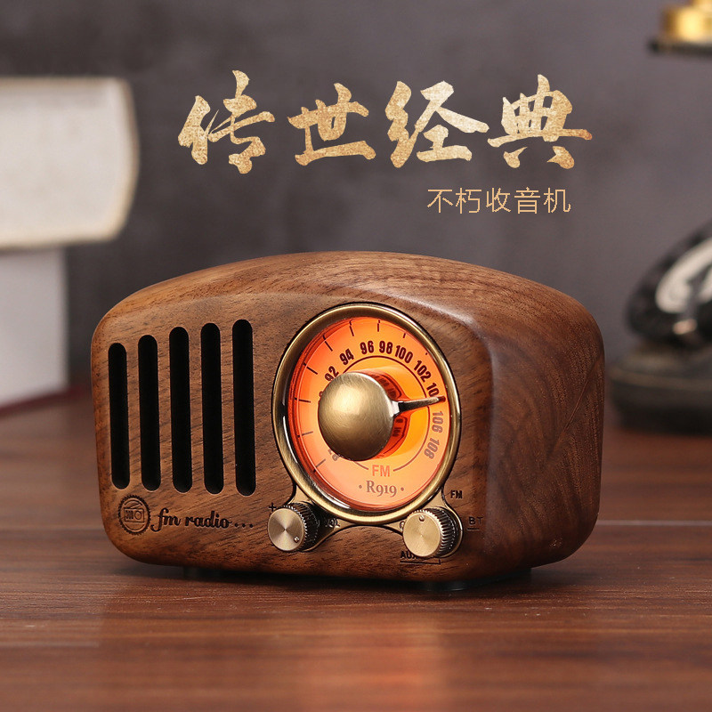 胡桃木蓝牙音箱收音机复古迷你插卡小音响实木质充电FM音之谣R919