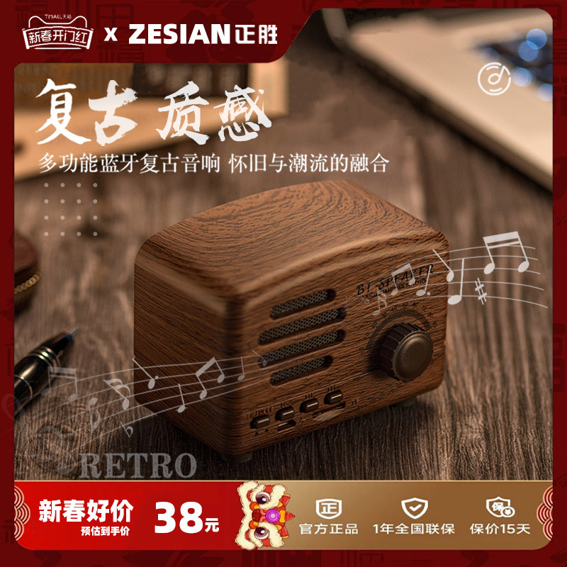 山水T33无线蓝牙小音箱复古迷你音响收音机留声机低音炮生日礼物