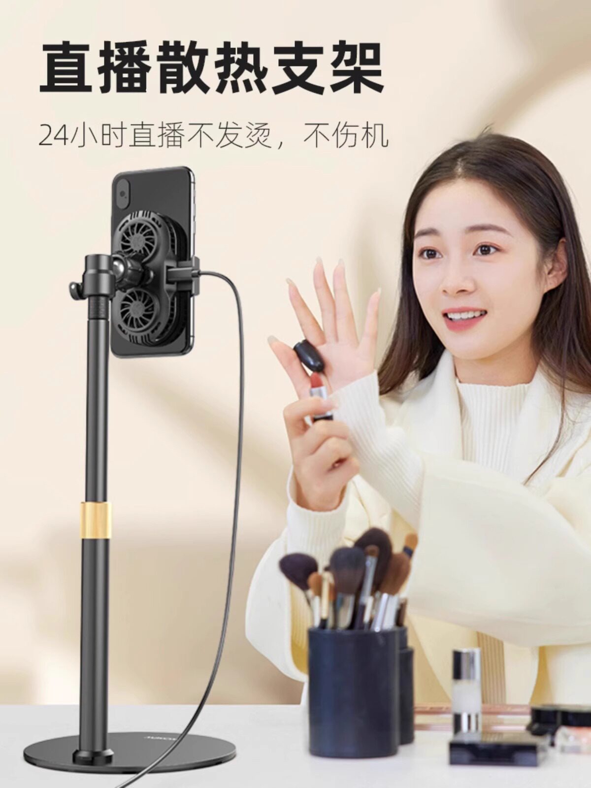 手机直播支架带散热器桌面半导体制冷快速降温神器台面背夹固定风扇专用铝合金懒人支撑架