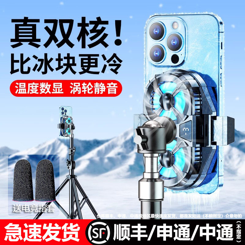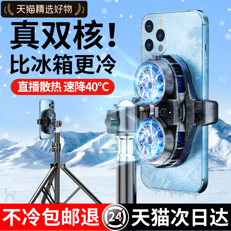 直播专用】手机散热器降温神器半导体制冷超静音冰封背夹一体支架带风扇主播打游戏适用苹果小米黑鲨一加红魔