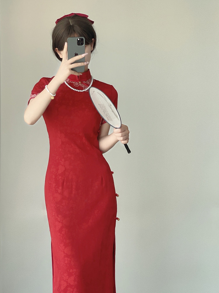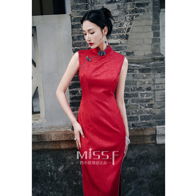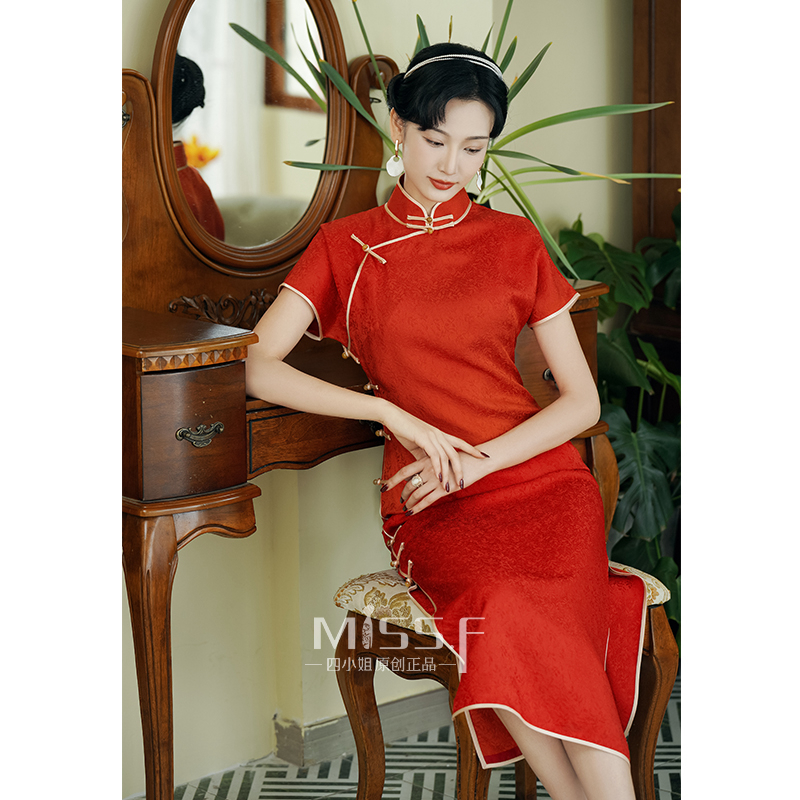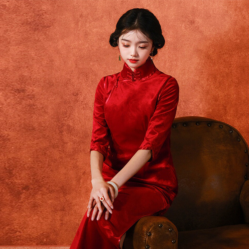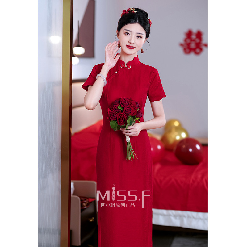 江南范大红色改良版旗袍裙复古年轻款结婚订婚敬酒服秋天新中式