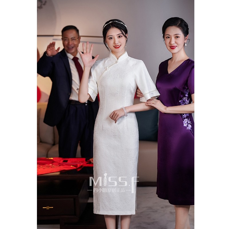 四小姐【相识】白色长袖订婚旗袍2023新款年轻款少女出阁敬酒服