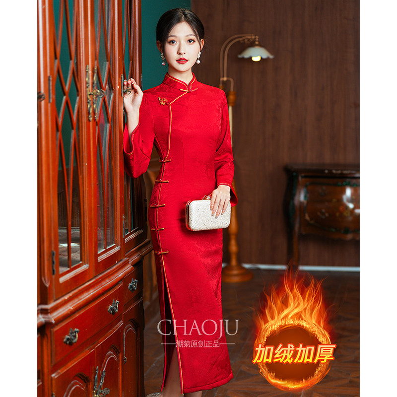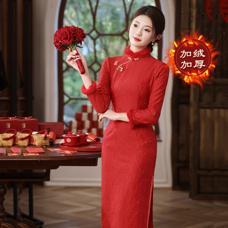 红色敬酒服旗袍秋冬季加绒加厚改良年轻款新娘结婚订婚礼服新中式