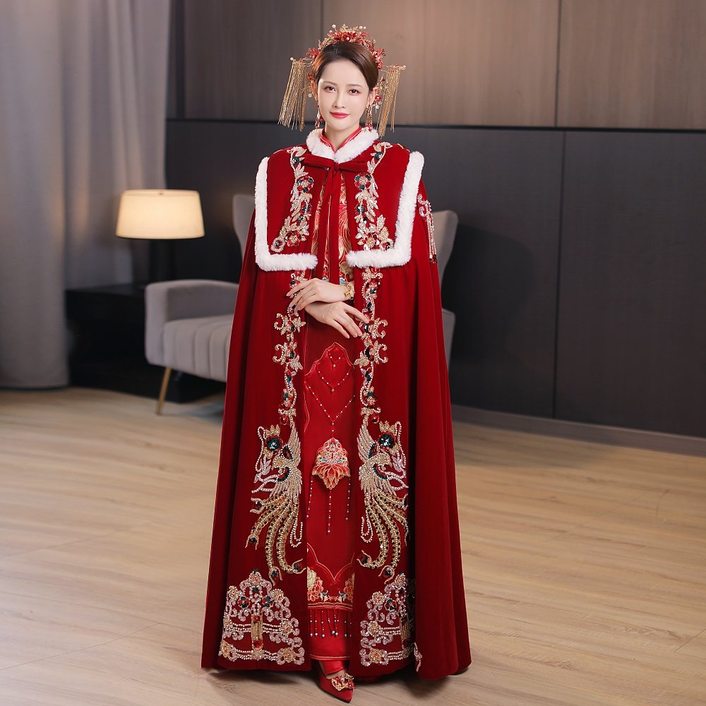 新娘秀禾服披风斗篷龙凤褂新中式婚服结婚敬酒礼服冬季保暖重工款