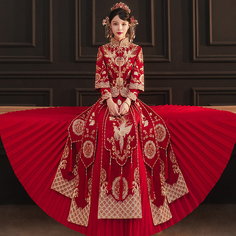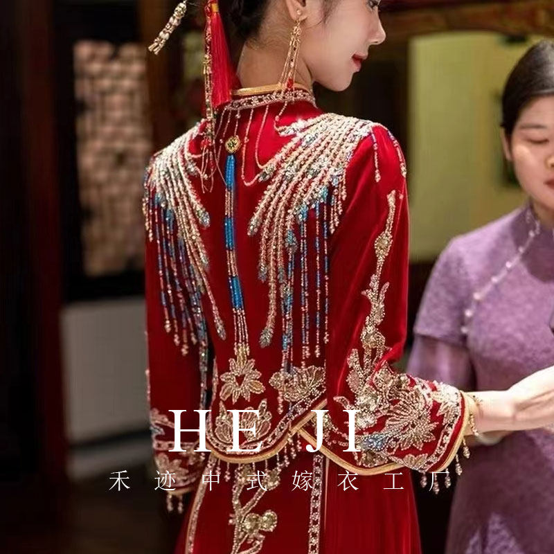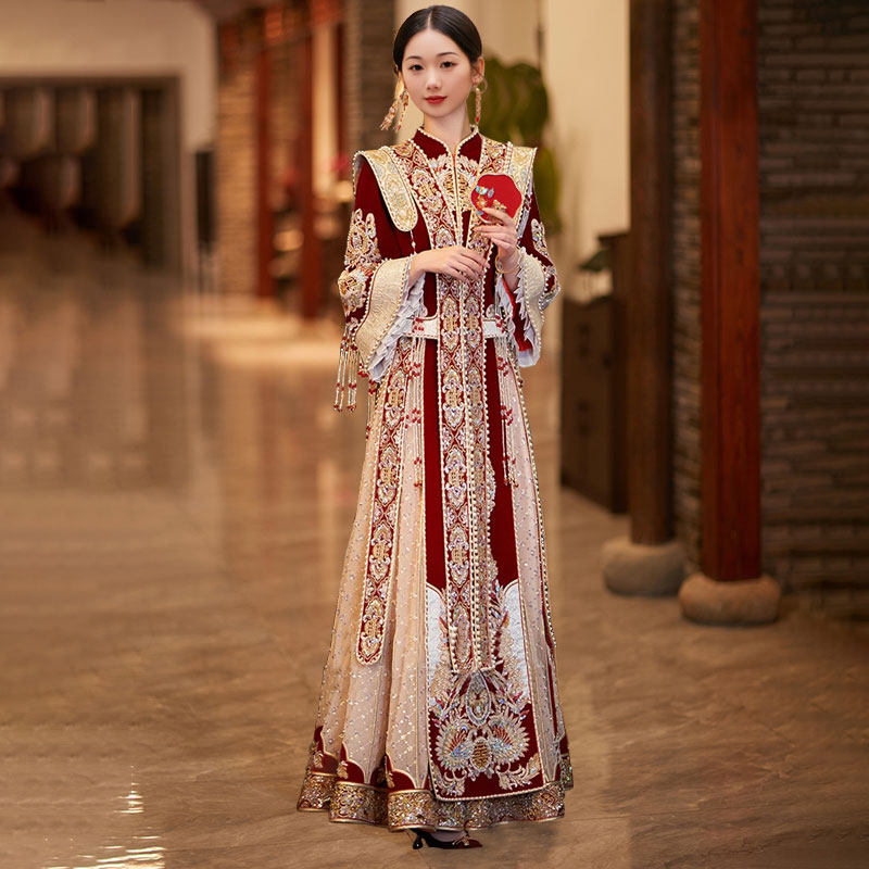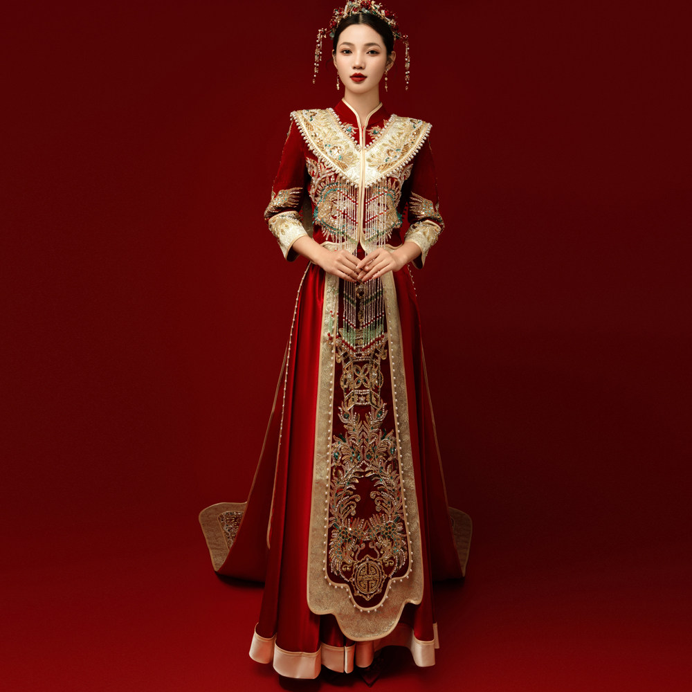 冬季丝绒秀禾服2023年新款结婚中式婚纱新娘敬酒礼服重工嫁衣显瘦