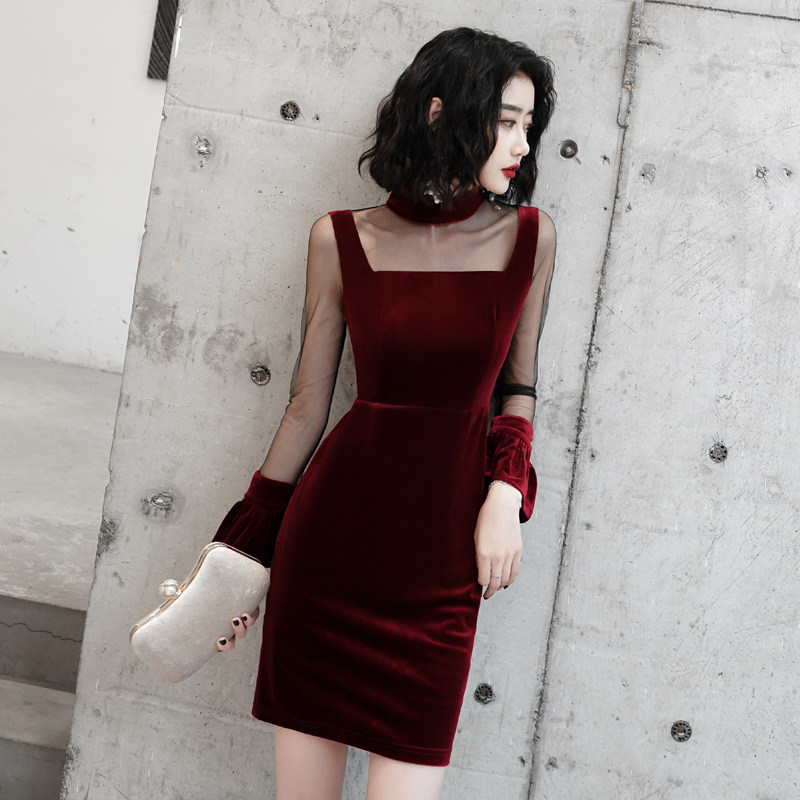 多丽琦新品年会礼服裙高端轻奢小众婚礼宴会敬酒服修身丝绒连衣裙