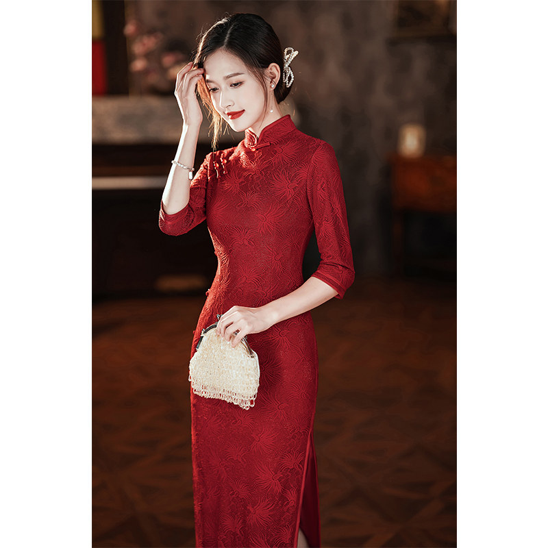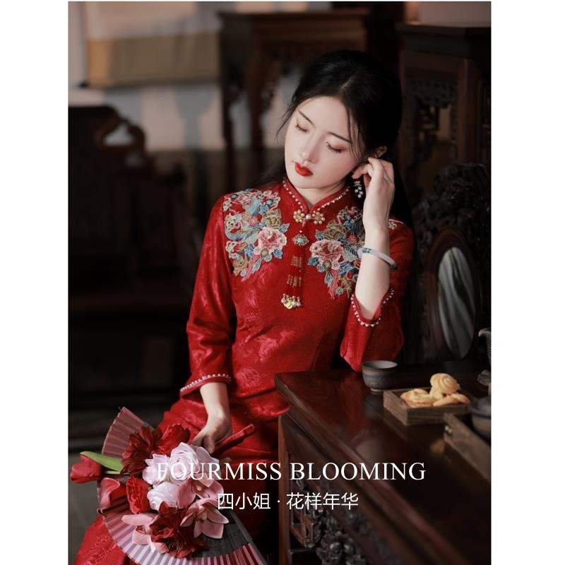 【花样年华】高端旗袍|新娘秋冬季敬酒红色新款服礼服便装新长袖