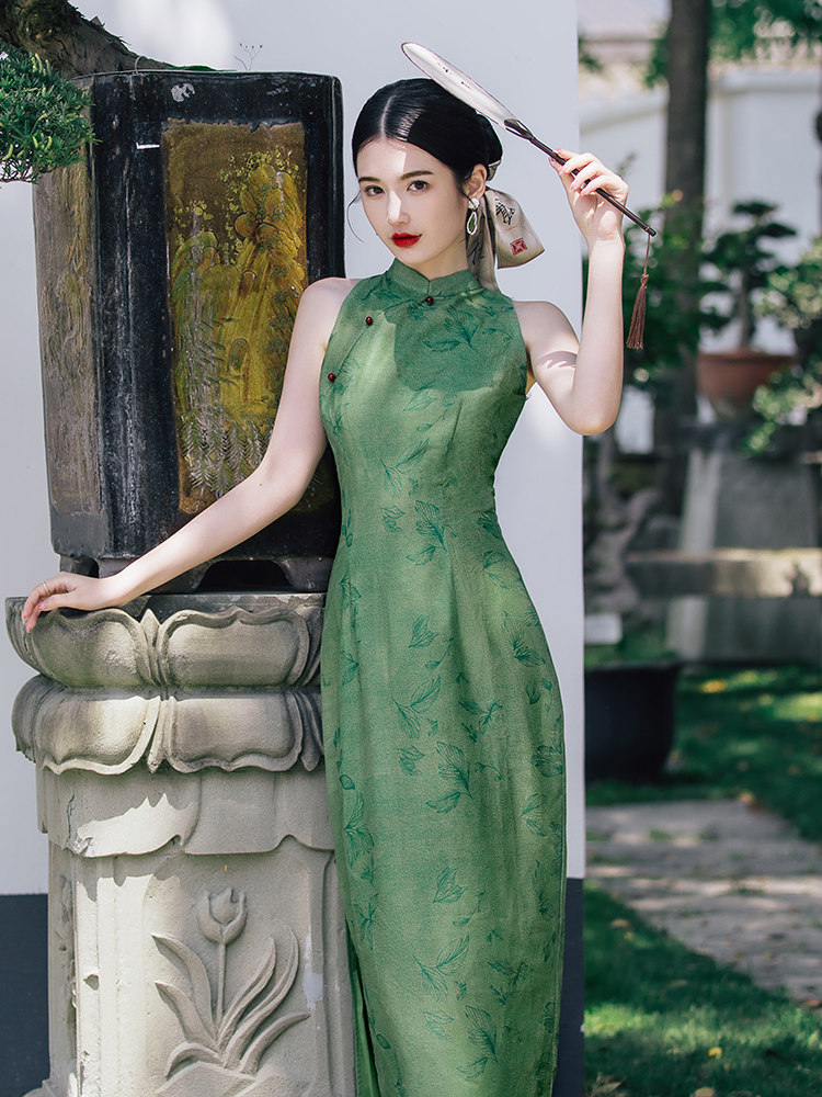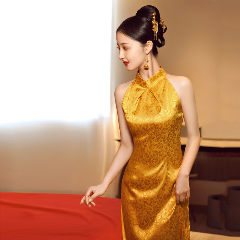 春冰丝薄长款弹力新中式旗袍修身演出服礼服敬酒服夜上海走秀082