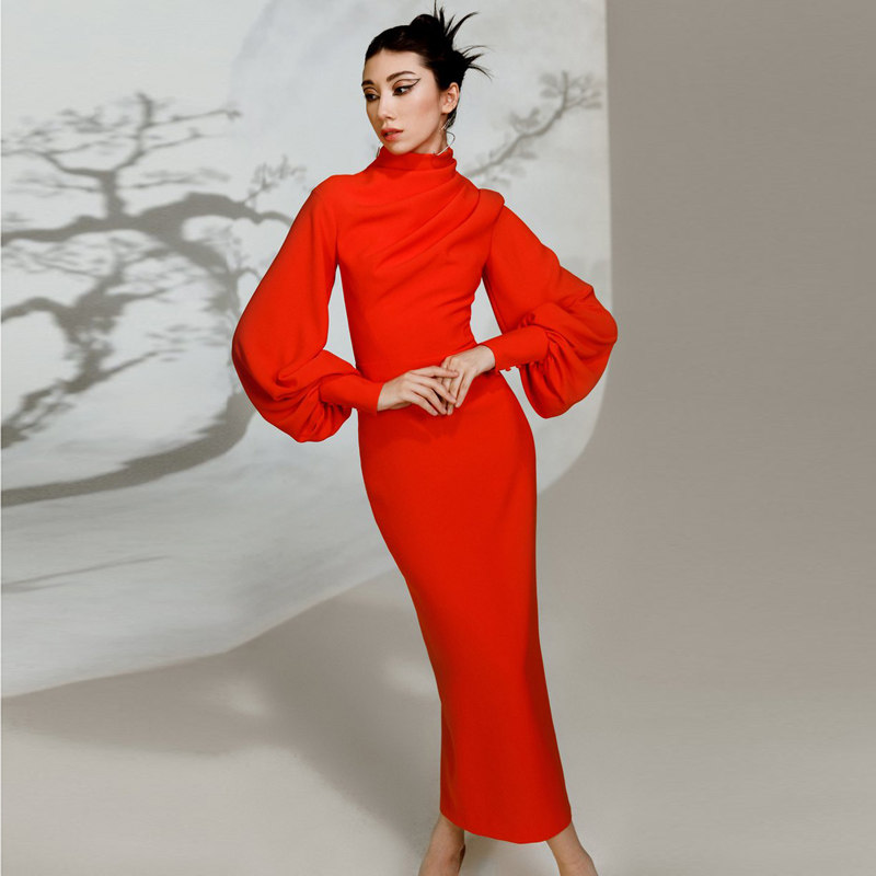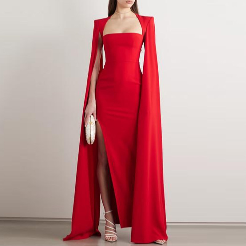 高端大气晚礼服大红色新娘敬酒2023新款年会主持人舞台连衣裙长款
