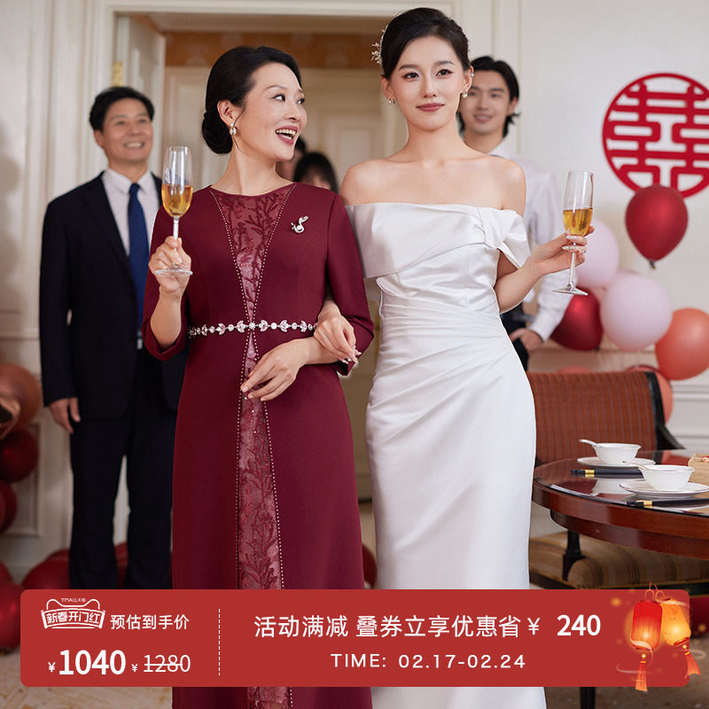 时尚新娘晚礼服2023新款妈妈装婆婆敬酒服女年会小礼服连衣裙中长