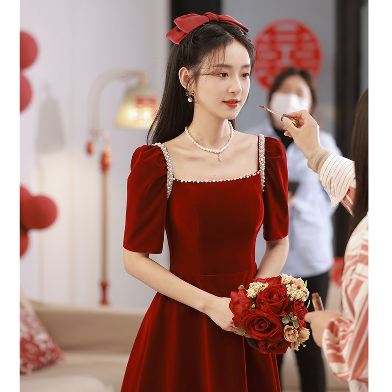 敬酒服新娘小个子酒红色订婚礼服裙平时可穿高级感结婚显瘦回门女