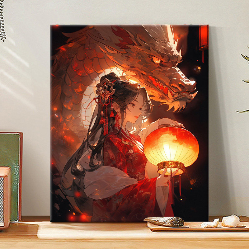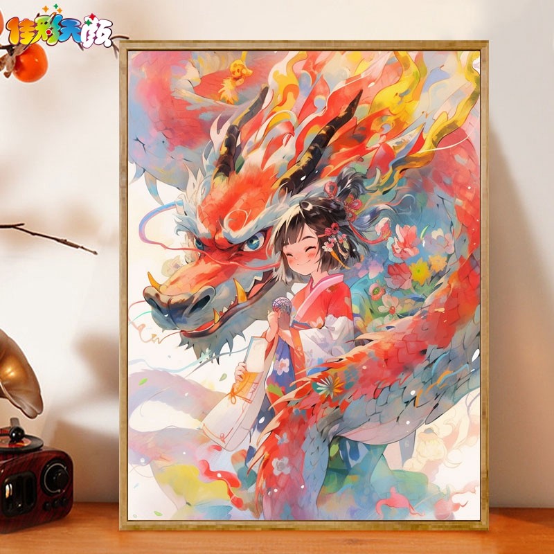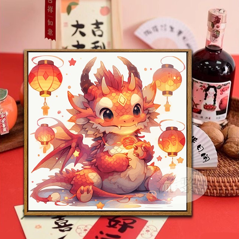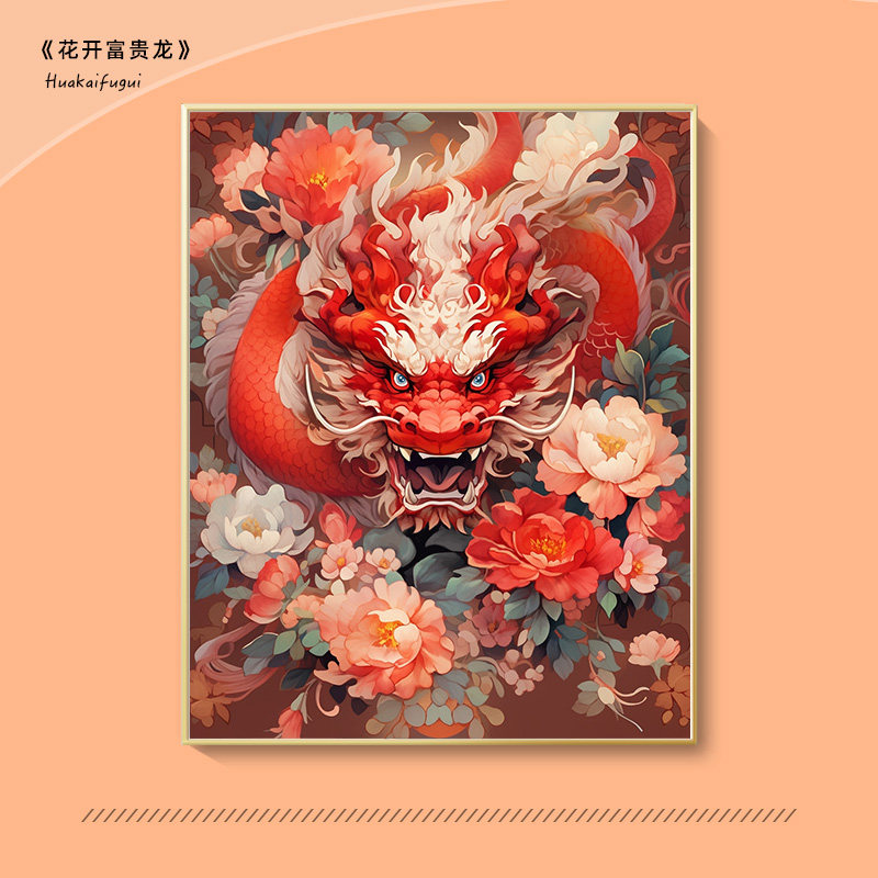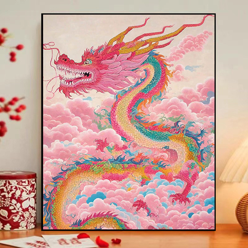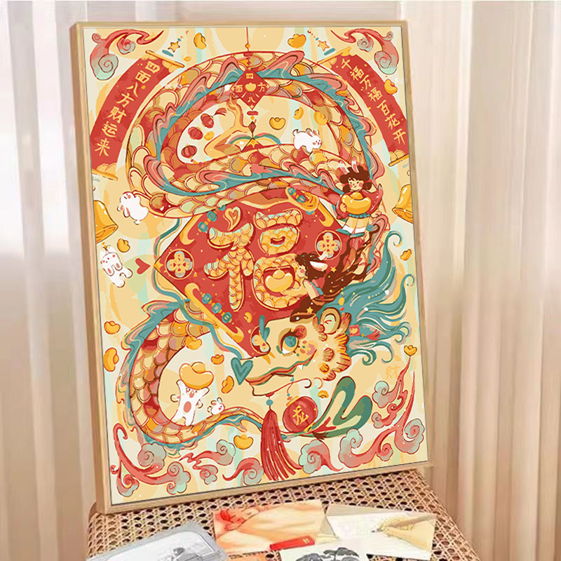 中国吉祥龙年新年数字油画手工diy填充涂色画油彩画丙烯画手绘画