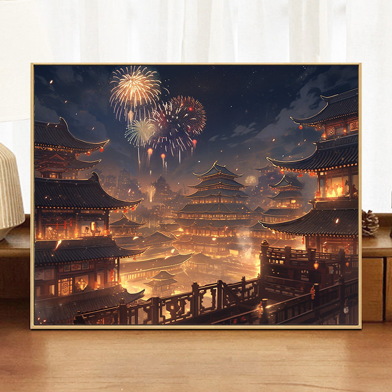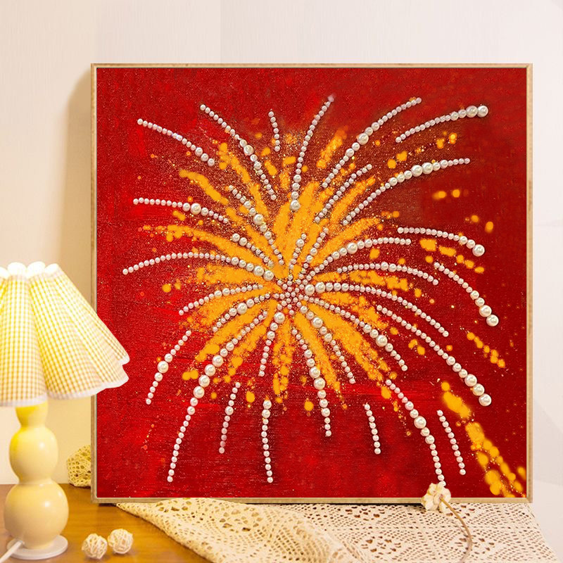 珍珠手工烟花DIY数字油画手工绘填充涂色材料包丙烯新年装饰挂画