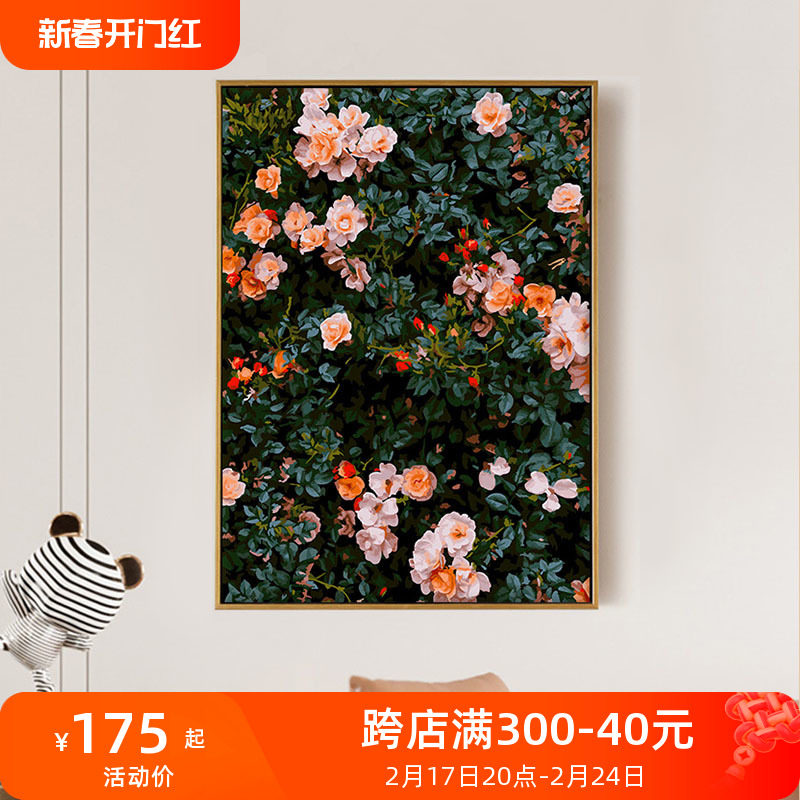 自油自画 数字油画diy卧室手绘手工填充填色花卉油彩画 蔷薇花园