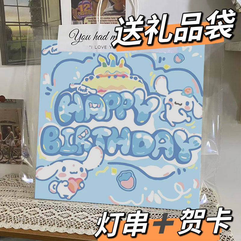 三丽鸥玉桂狗生日快乐数字油画diy手绘填色库洛米草莓熊卡通挂画