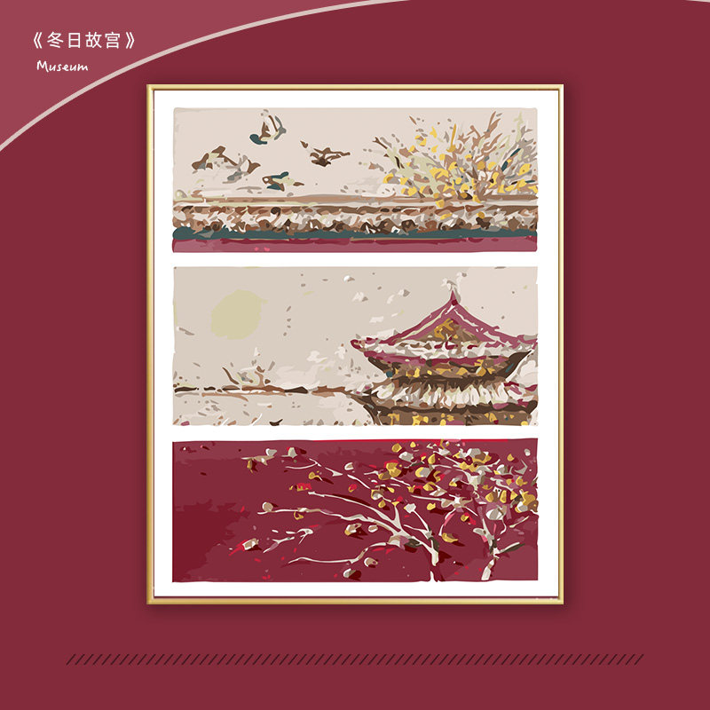 冬日故宫diy数字油画宫墙建筑手工填色减压解闷装饰画客厅手绘画