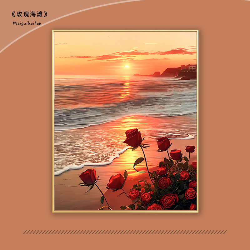 海滩玫瑰diy数字油画填充高级感七夕手工礼物手绘涂画填色油彩画