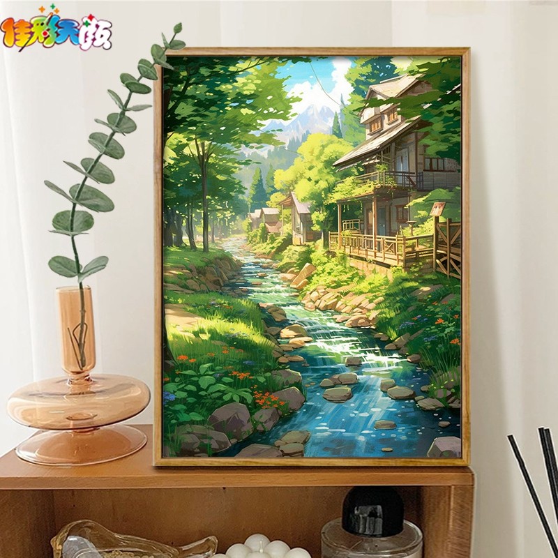佳彩天颜 数字油画DIY手工填色宫崎骏森林村庄客厅油彩画装饰画