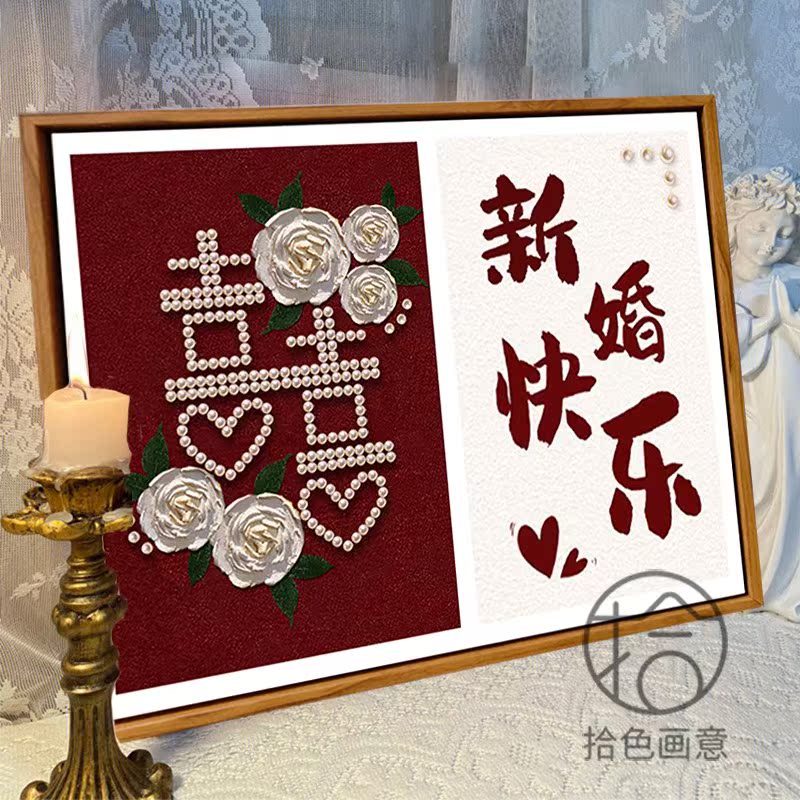 喜字 新婚订婚礼物定制diy数字油画喜庆伴手礼丙烯立体肌理装饰画
