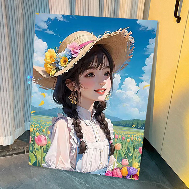 向日葵女孩数字油画手工diy填充画手绘丙烯油彩肌理画涂色填色画