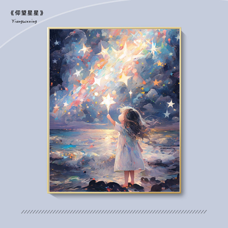 仰望星空diy数字油画高级感卡通动漫手工填充手绘填色丙烯油彩画
