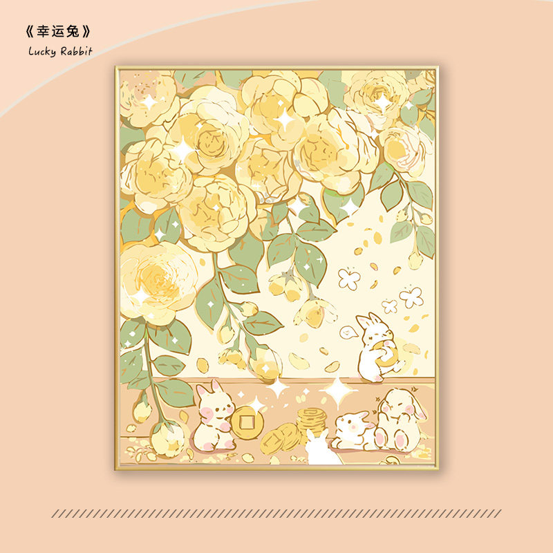 秋风落叶diy数字油画填充手绘手工礼物涂鸦兔子填色油彩画治愈系