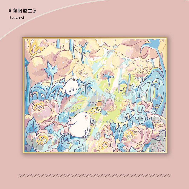 数字油画diy风景花束日落丙烯装饰画手工涂色彩绘清新高级感填色