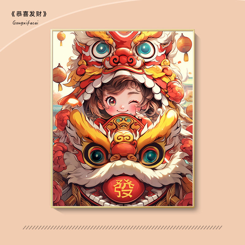 2024新年数字油画diy填充涂色填色画手工手绘油彩装饰画龙年春节