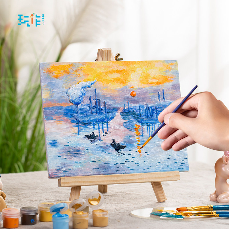 玩作数字油画diy手工立体浮雕手绘画填充丙烯填色画油彩画装饰画