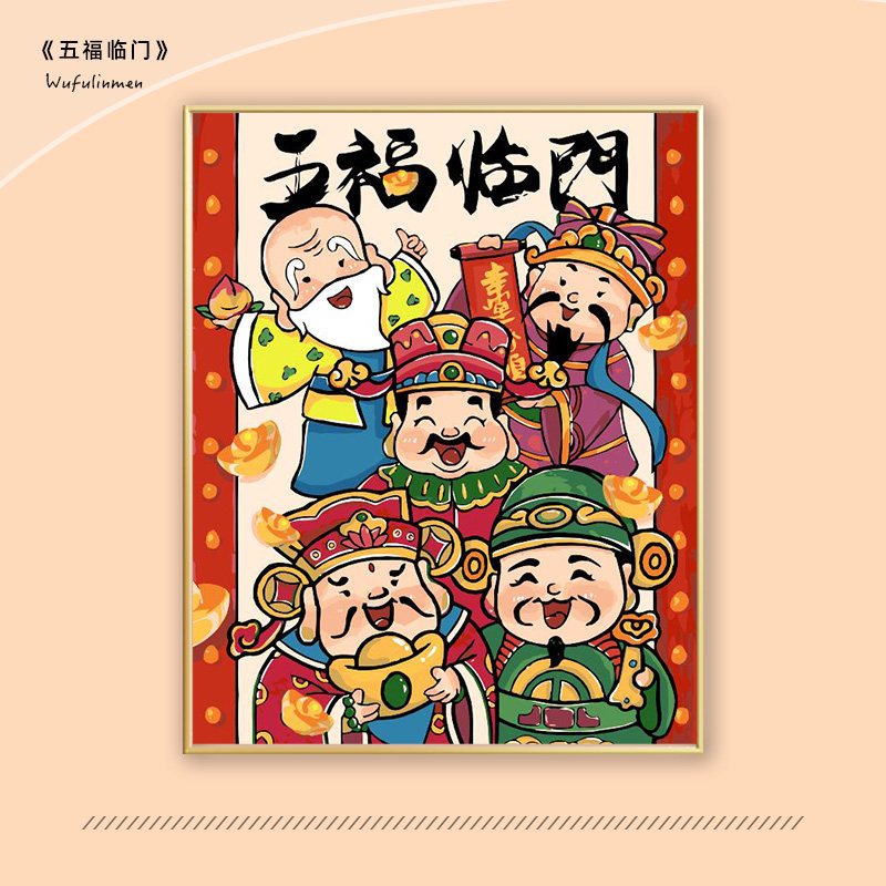 五福临门diy数字油画五路财神手工涂色丙烯填充手绘填色油彩画