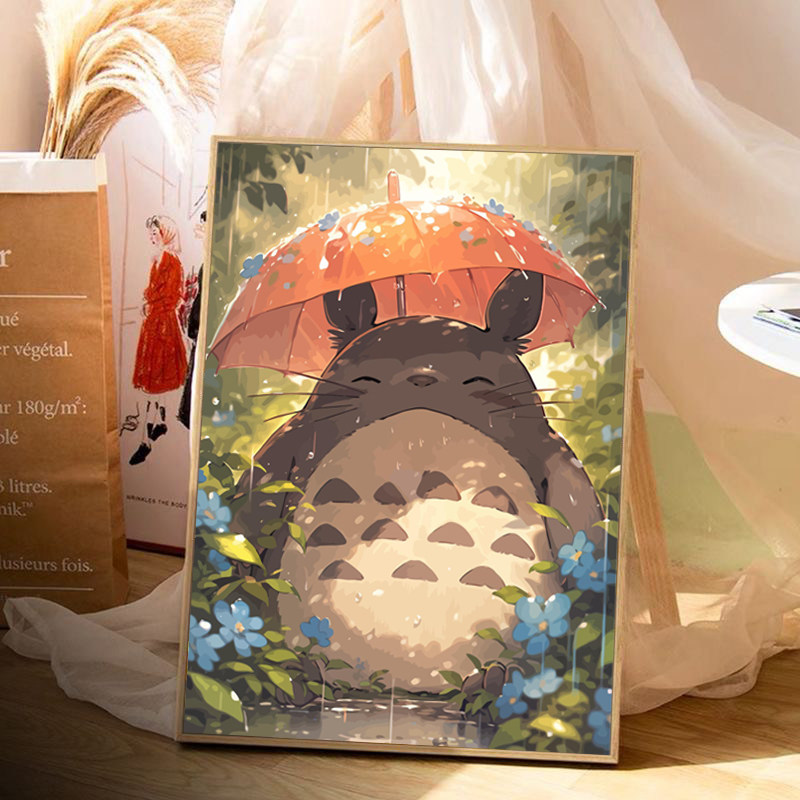 宫崎骏卡通治愈龙猫DIY数字油画手工绘填充涂色解压丙烯装饰挂画