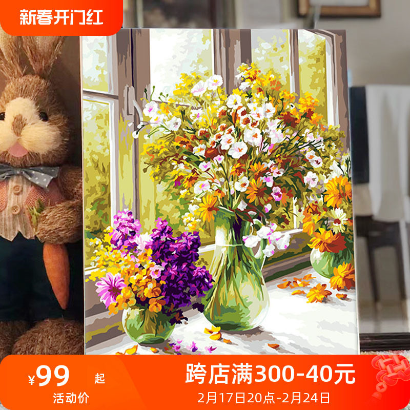 油画风景丙烯画数字油画diy填充涂色手工手绘治愈系花卉装饰挂画