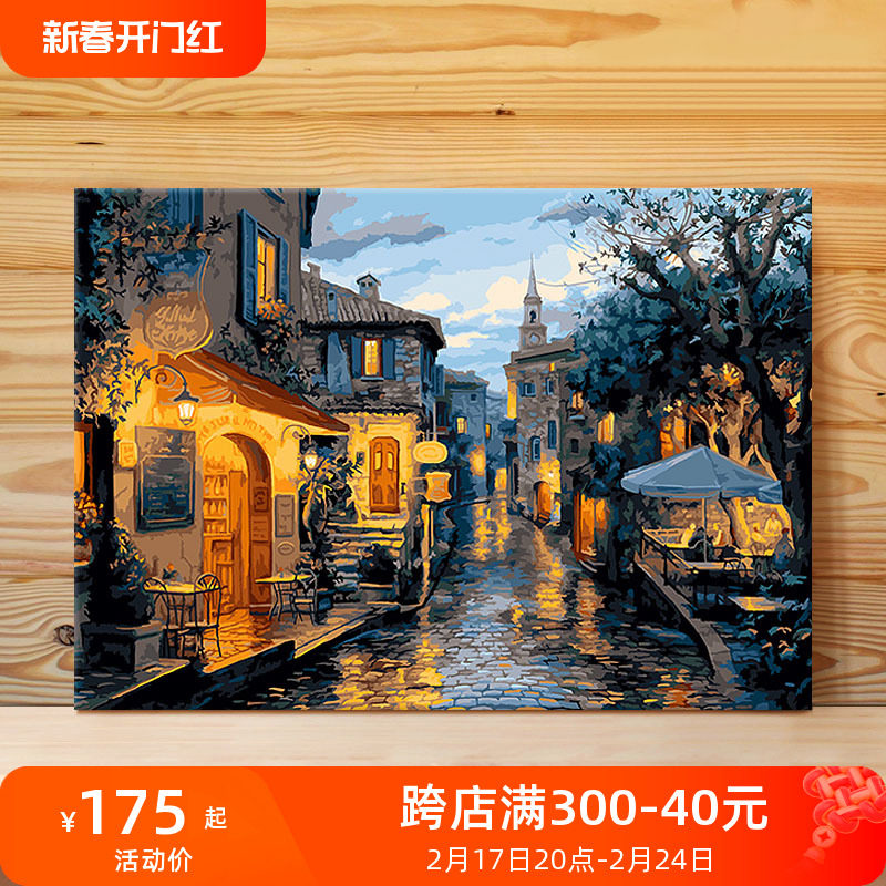 diy数字油画成人手绘风景手工填色油彩填色画客厅装饰画 雨后小巷