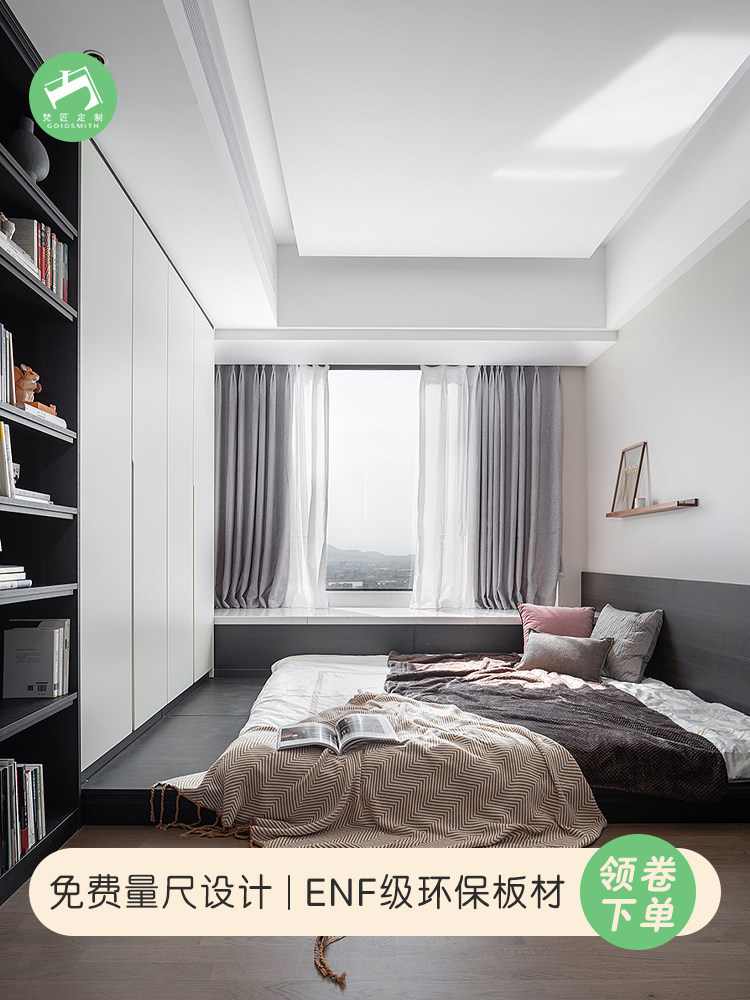定制榻榻米定制整体实木衣柜踏踏米床撞色简约小卧室房间家具组合