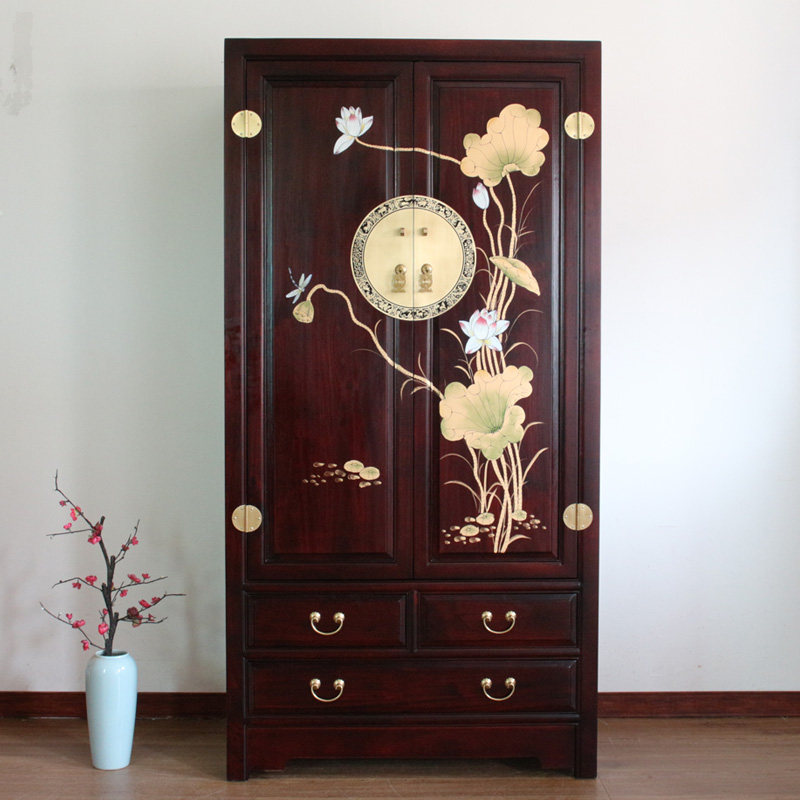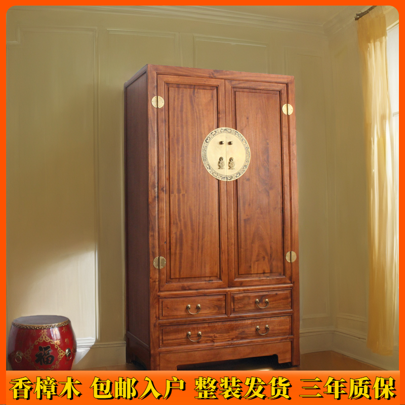 新中式雕花香樟木大衣柜家用现代简约两门全实木整体衣橱卧室家具