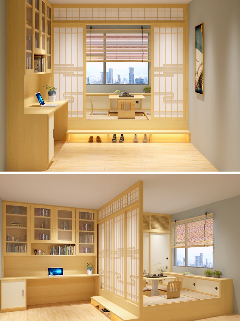 榻榻米日式卧室整体和室塌塌米实木地台床衣柜书柜踏踏米全屋定制